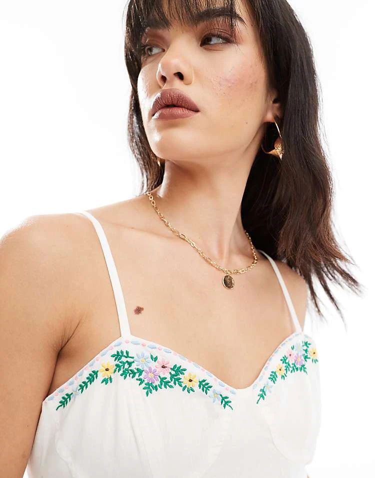 - Floral embroidery details